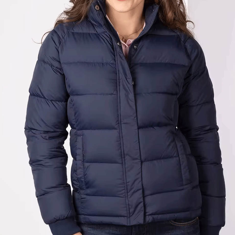 แจ็กเก็ตขนเป็ดสำหรับผู้หญิงเสื้อแจ็กเก็ตสำหรับใส่กลางแจ้งมีกระเป๋าข้างสำหรับใส่ทำงานระบายอากาศสีโซลิแห้งเร็วสไตล์ลำลอง