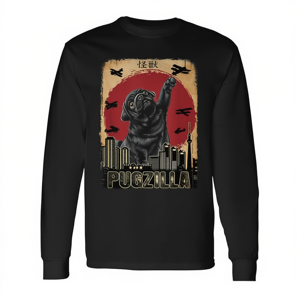 เสื้อยืดแขนยาวลายพั๊กซิล่า สีดำ ลายไคจู ดีไซน์กราฟิก คอกลม ยูนิเซ็กซ์ ไซส์ผู้ใหญ่ พิมพ์ลายดิจิทัล สำหรับโปรโมชั่น