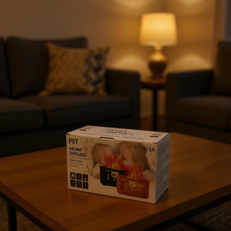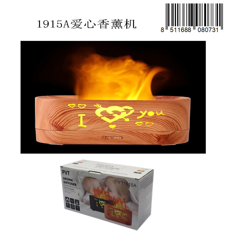 เครื่องกระจายกลิ่นหอม Puit รุ่น 101-200 มล. รูปหัวใจไม้ พร้อมไฟ LED ตกแต่งบ้าน วางบนโต๊ะ