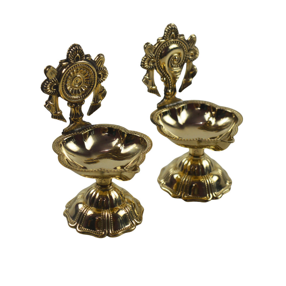 Puja Diya ฐานหนัก Aarti Diya สำหรับ pooja ในวัด | Deepak สำหรับ pooja Diwali ของขวัญของตกแต่งบ้านวัด (ทองเหลือง)