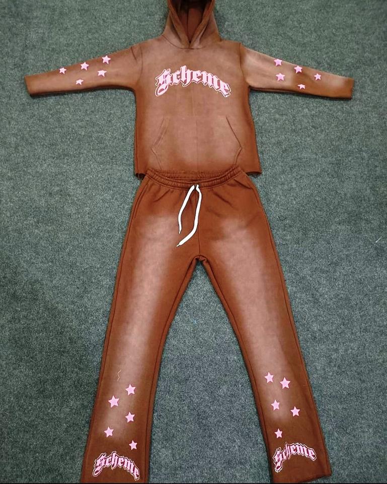 ชุดวอร์มล้างกรดแบบสวมหัวของผู้ชาย2ชิ้นชุดวิ่งแบบเรียงซ้อนโลโก้เทอร์รี่กางเกงวอร์มและชุดมีฮู้ด