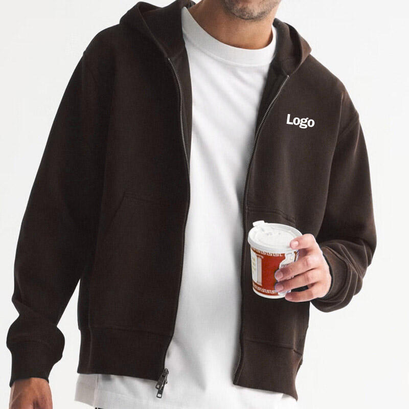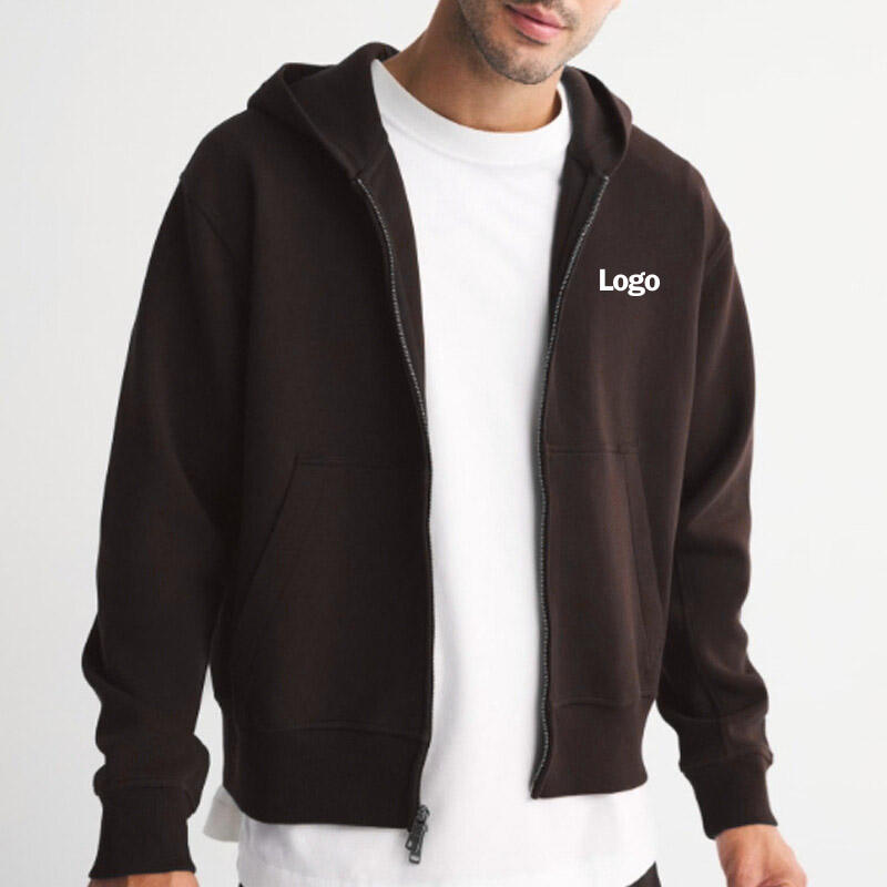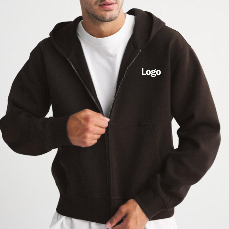 เสื้อฮู้ดซิปเต็มตัว แขนยาว ผ้าฟลีซ สีพื้น สำหรับผู้ชาย เสื้อแจ็คเก็ตฤดูหนาว บริการ OEM มีกระเป๋า ผ้าฝ้าย 100%