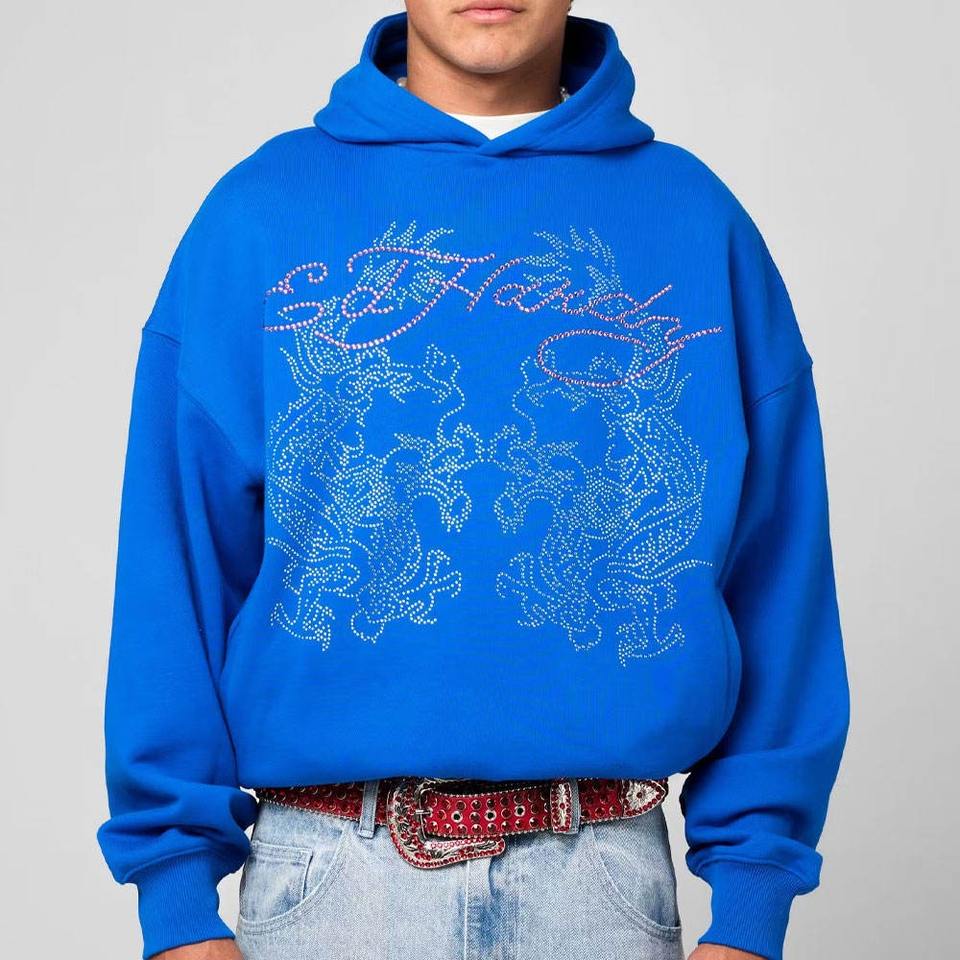 เสื้อฮู้ดดี้ปักคริสตัลคุณภาพสูง ราคาดีที่สุด ผ้าโพลีเอสเตอร์/คอตตอน สีตามสั่ง สไตล์ลำลองสำหรับฤดูหนาว ตัดเย็บด้วยระบบดิจิทัล ขายดีที่สุด