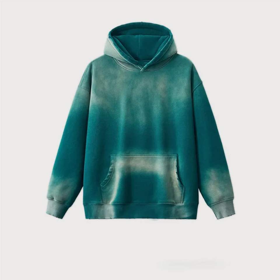 เสื้อฮู้ดผ้าระบายอากาศแขนยาวแบบสวมหัวสำหรับผู้ชายผู้หญิงเสื้อล้างกรดแบบวินเทจพิมพ์ลายดิจิตอล