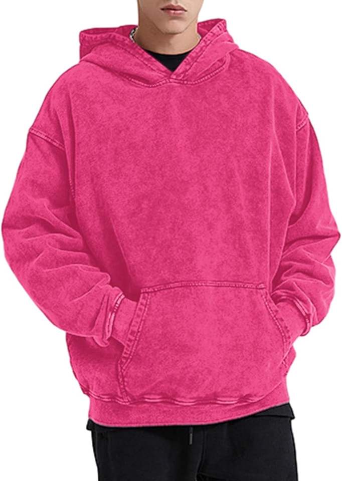 Pullover Style Fleece Hoodies Oversized Hip Hop Custom Made Logo OEM Service Available Acid Washed Pink Colour Kangaroo Pocket