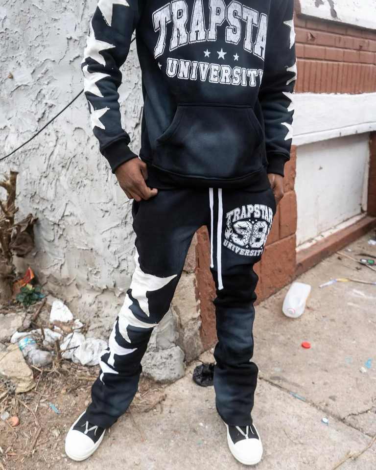 ชุดวอร์มแบบสวมหัวสำหรับผู้ชายชุดวอร์มขาบานเสื้อมีฮู้ดและกางเกงวอร์มขาบานปักโลโก้