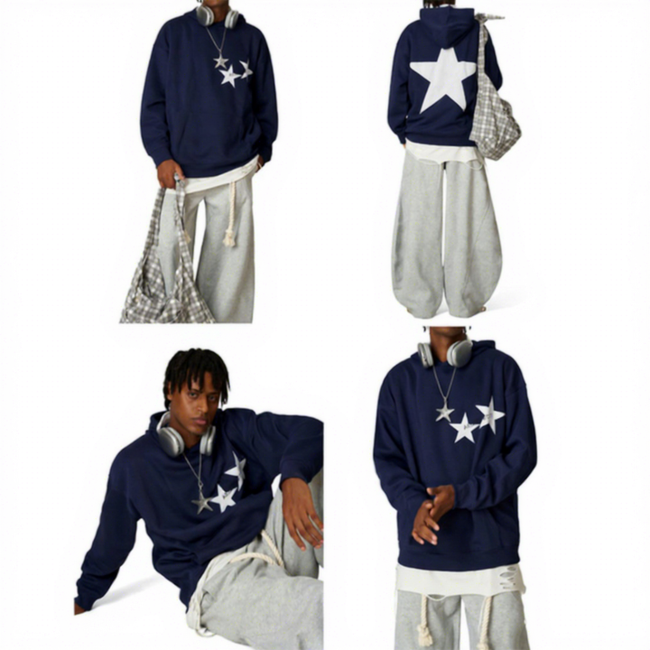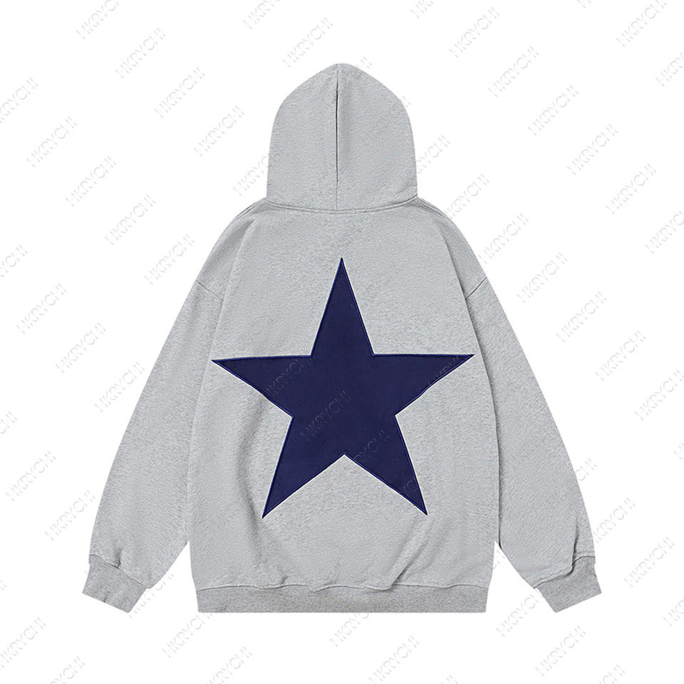 เสื้อฮู้ดแบบสวม Unisex ผู้ชาย ผ้าฟลีซสำหรับฤดูหนาว ทรงโอเวอร์ไซส์ หลวม พิมพ์ลาย ปักโลโก้ดาว ป้ายปักแบบกำหนดเอง กันลม กันน้ำ