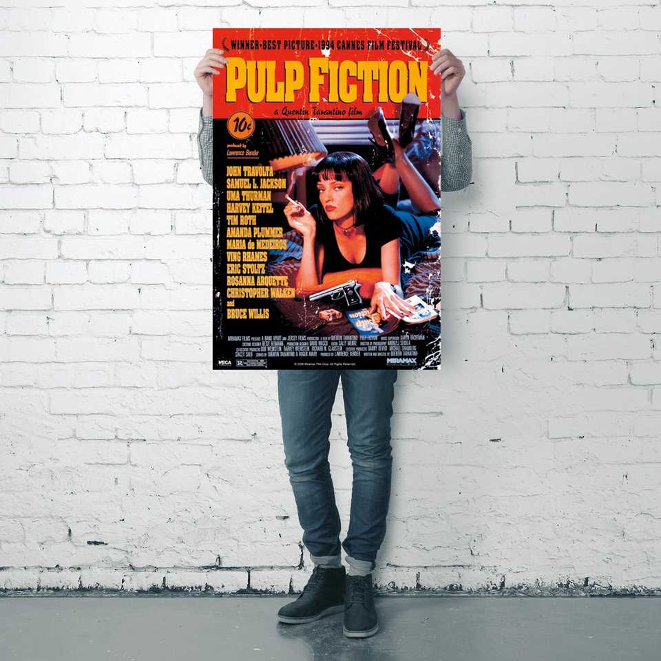 โปสเตอร์ภาพยนตร์พัลพ์ ฟิกชั่น ผลิตด้วยเทคนิคการพิมพ์ออฟเซตและดิจิทัล ทำจากไวนิลที่ทนทาน