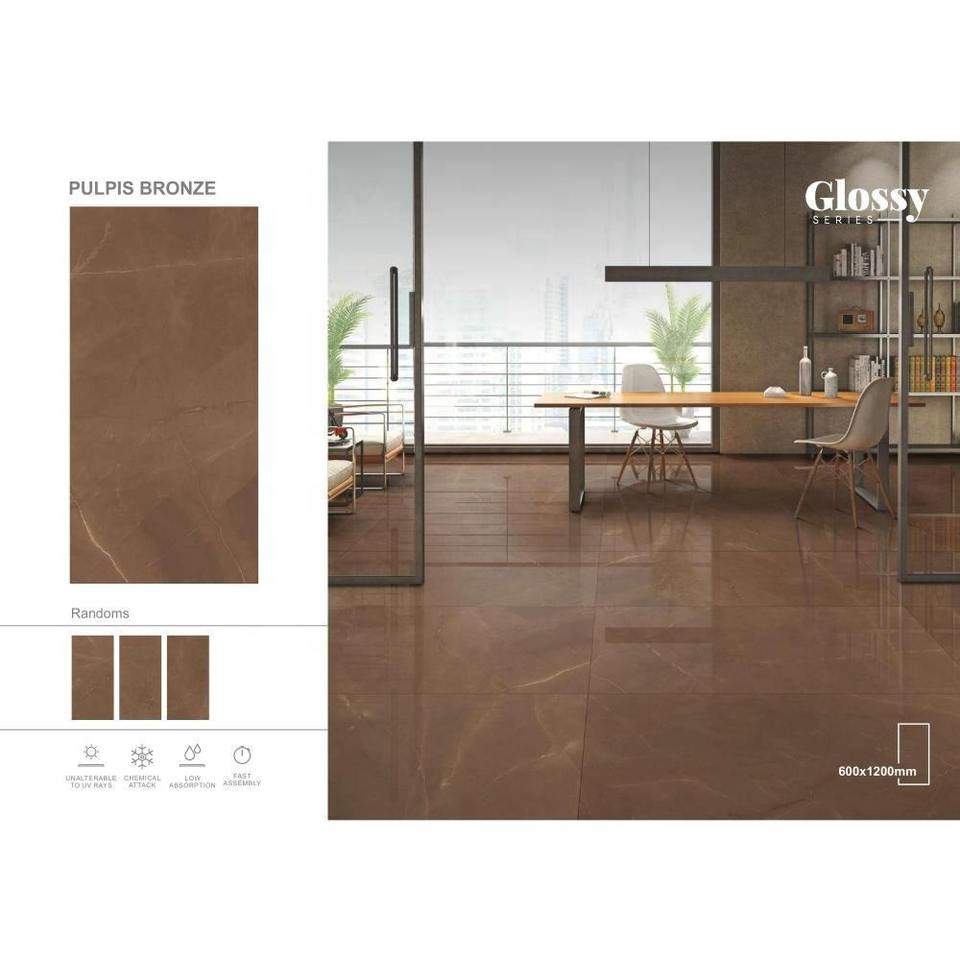 Pulpis Bronze 600x1200mm Porcelain 2x4 Ceramic Glossy Tiles Full Body India