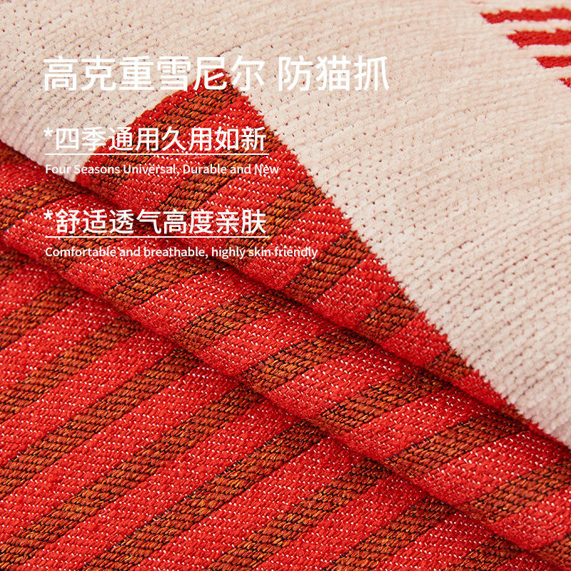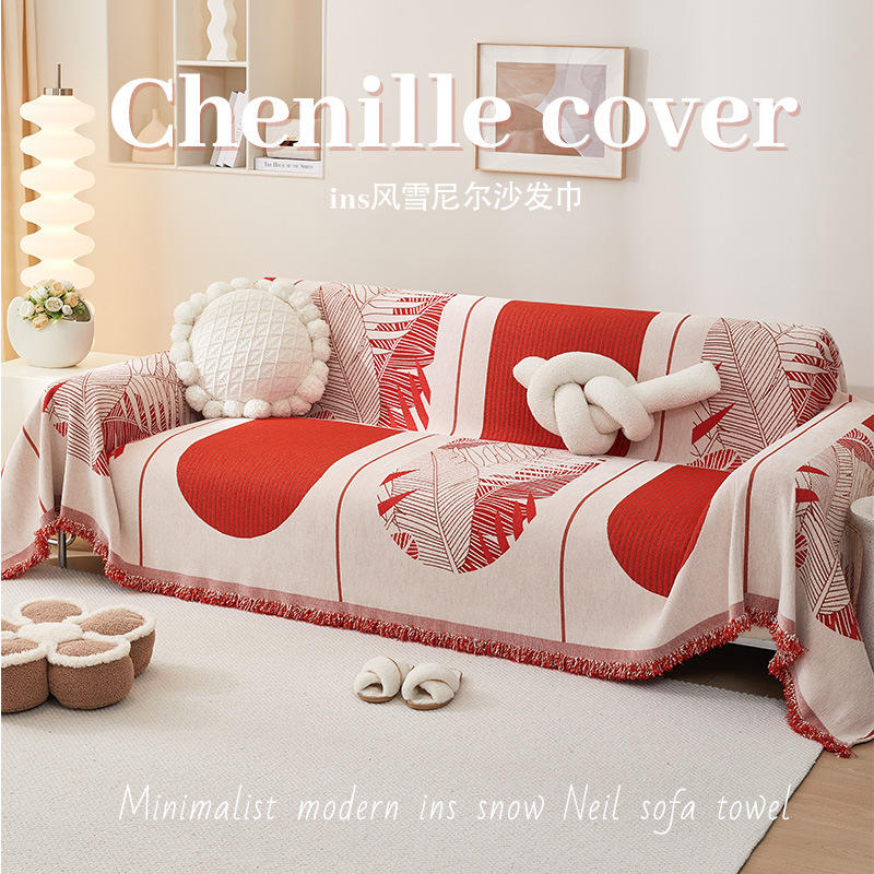 ปลอกโซฟาพิเศษสำหรับสมาชิกพัลส์ ลายพิมพ์เชนิลล์สีแดง ลายใบไม้ขนนก แบบแผ่นรอง ใช้ได้ทุกฤดู กันลื่น ป้องกันรอยขีดข่วนจากแมว