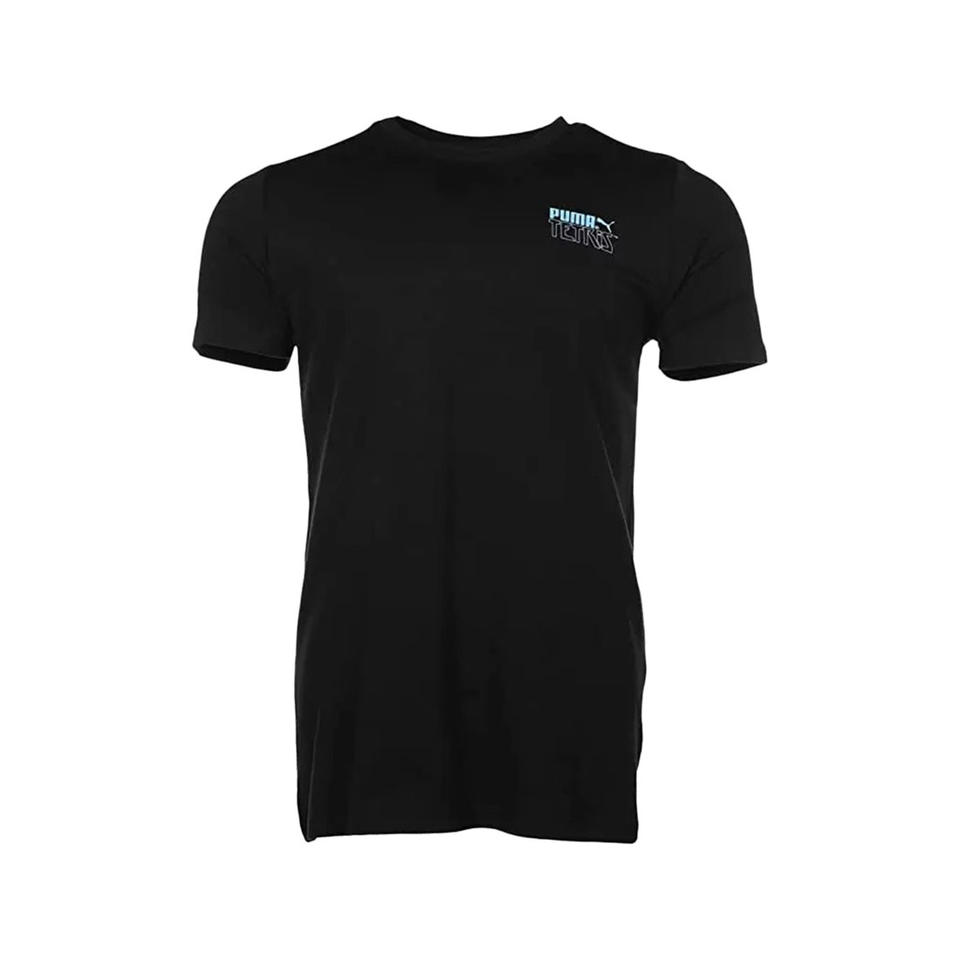 Puma Tetris เสื้อออกกำลังกายสำหรับบุรุษและเสื้อยืดสี: ดำ/ท้องฟ้า100% ของแท้