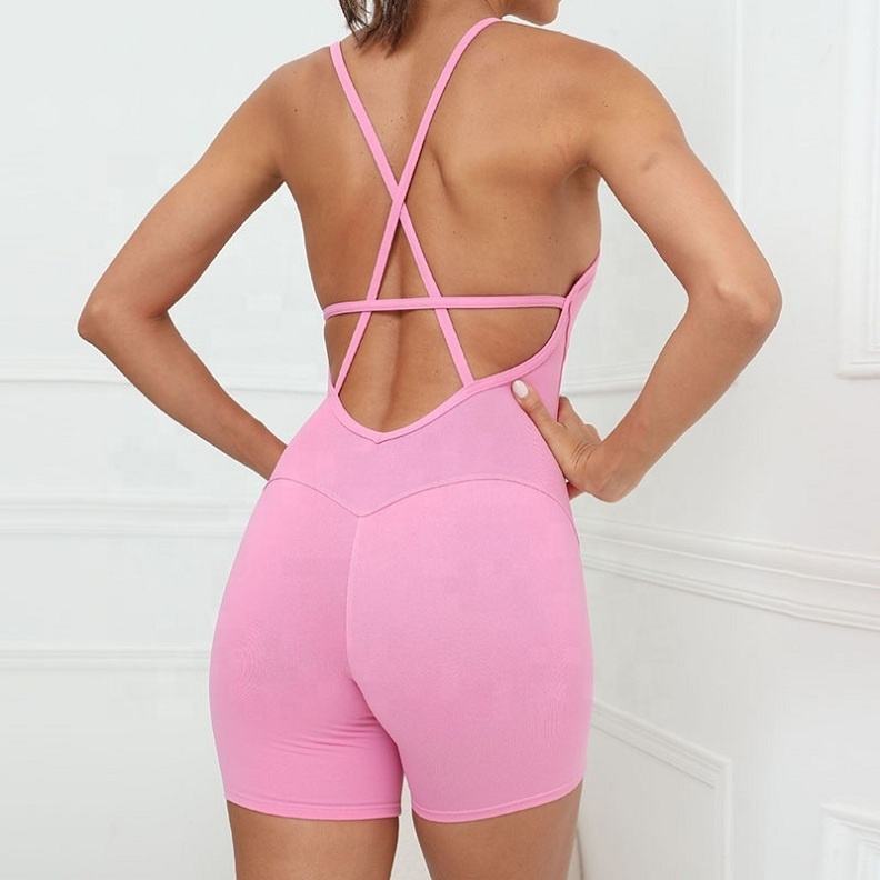 Punchin ชุดกีฬาจั๊มสูทออกกำลังกายแบบชิ้นเดียวของผู้หญิงชุดเล่นโยคะออกกำลังกายแขนกุดแบบไขว้หน้าแบนไม่มีแขนจั๊มสูทซักโลโก้ผ้าสแปนเด็กซ์