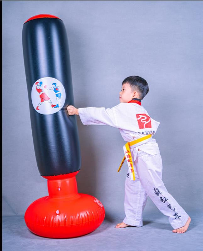 กระสอบทรายตั้งพื้นปรับระดับความสูงได้ สีแดง พร้อมนวมชกมวย กระสอบทรายปรับระดับความสูงได้