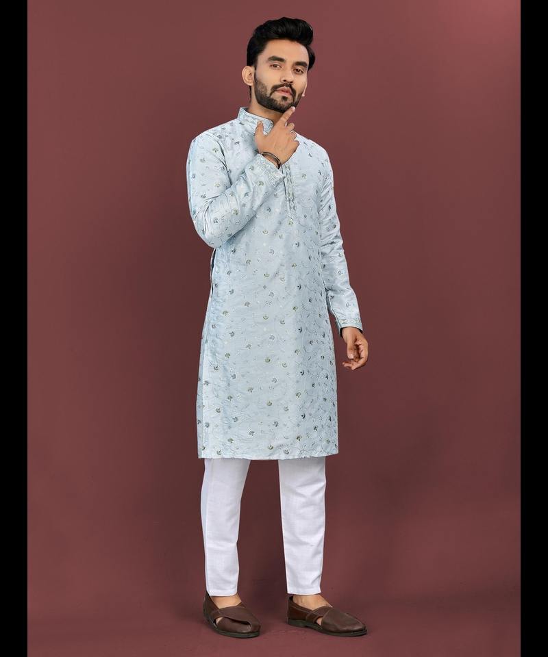 ชุดนอนลายไก่สไตล์ punjabi สำหรับผู้ชายในฤดูหนาวผ้าคอตตอนสีกากีมีกระดุมและคอโซ่
