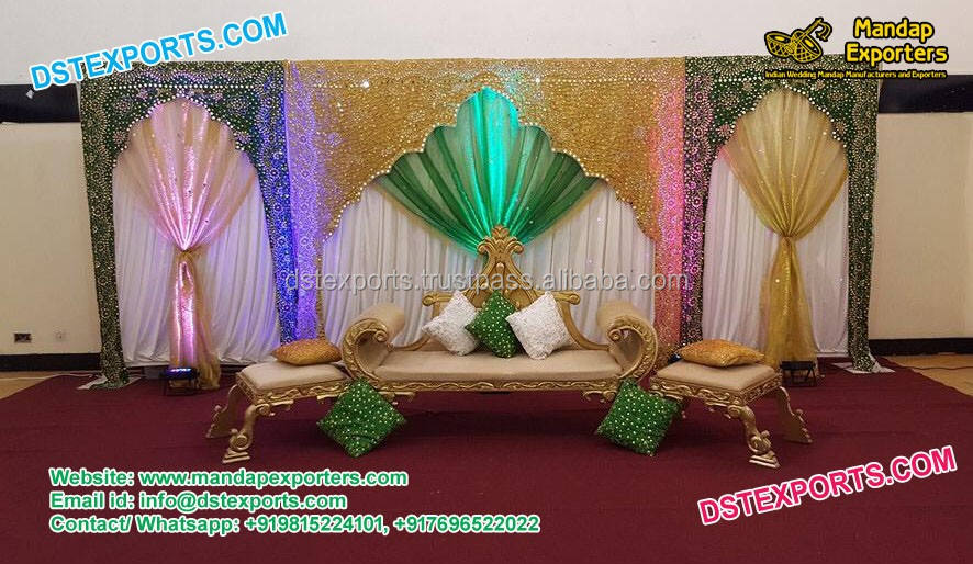 ม่านฉากหลังสำหรับเวทีแต่งงานสไตล์อินเดียสไตล์ punjabi ม่านฉากหลัง zari สำหรับงานแต่งงานแบบเอเชีย