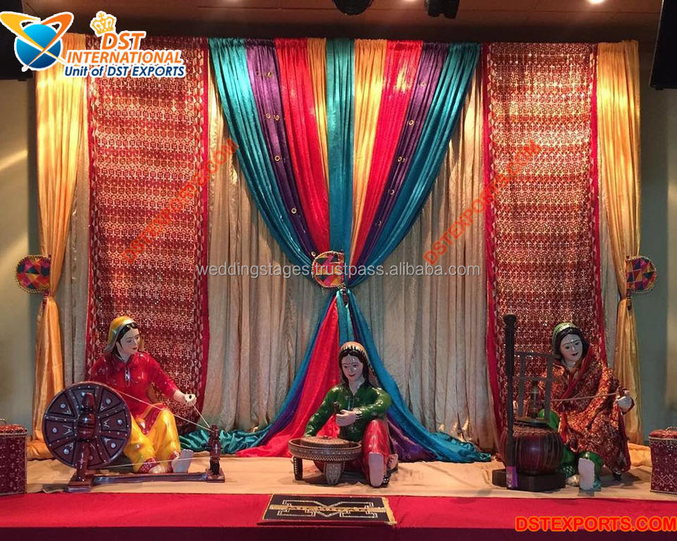 งานฝีมืองานแต่งงานแบบปัญจาบ รูปปั้นไฟเบอร์กลาส วัฒนธรรมปัญจาบแบบดั้งเดิม รูปปั้นชาร์กา เลดี้ มาดานี ของตกแต่งเมยอน ลอนดอน