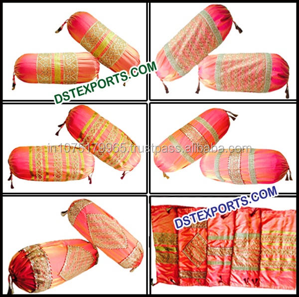 หมอนอิงงานแต่งงานแบบปัญจาบ ลายปักดีไซน์เนอร์ ผ้ากาวาส สีสันสดใส ทรงกลม น้ำหนักเบา ขนาดสั่งทำได้ สไตล์โมเดิร์น