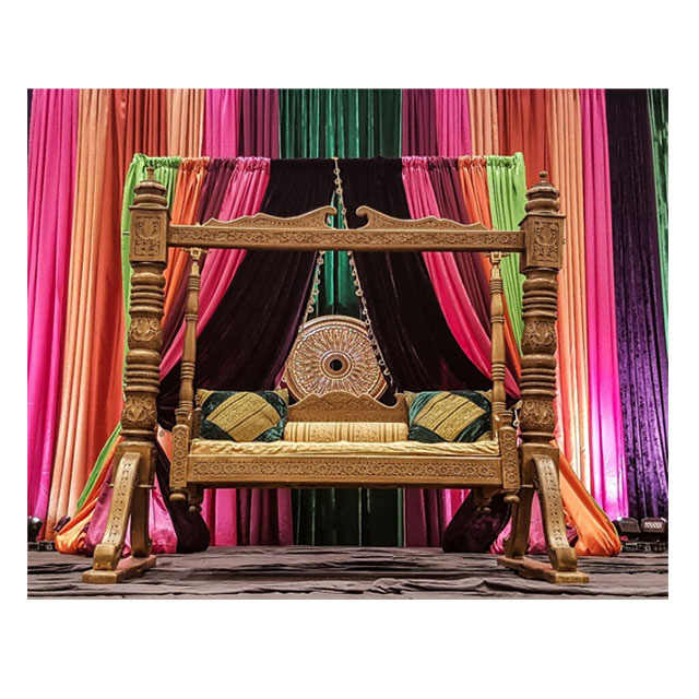 เวทีงานแต่งงานแบบปัญจาบ ซันเก็ต สวิงจูลา ชิงช้าไม้สวยงามสำหรับเวทีเมเฮนดี งานแต่งงานสุดหรู ชิงช้าไม้ทำมือ นิวยอร์ก