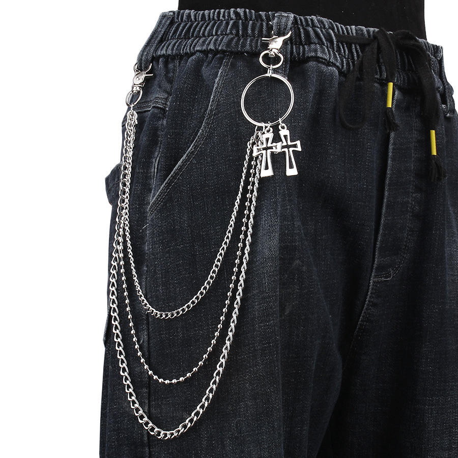 Hollowed-out cross double-layer pants chain triple-layer pants chain