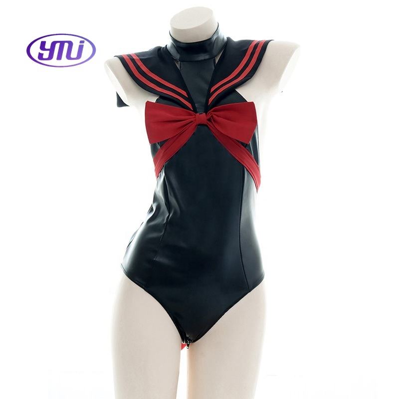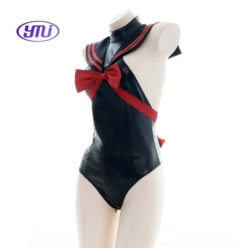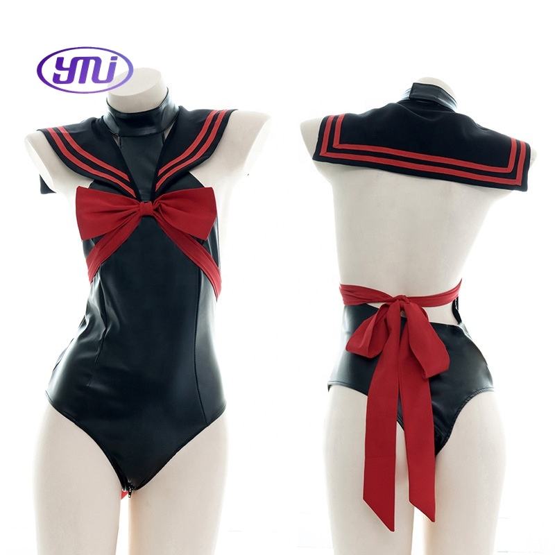 Punk Lolita ชุดบอดี้สูทปกกะลาสีผู้หญิง, ชุดคอสเพลย์ sukumizu คอเต่ามีโบว์ชุดว่ายน้ำโชว์หลังชุดว่ายน้ำบอดี้คอน