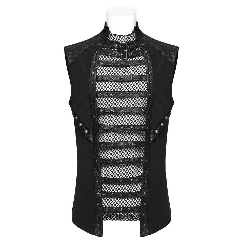 เสื้อกั๊กตาข่ายสไตล์พังก์สีดำสำหรับผู้ชาย แต่งหมุดและหนังเทียม ขายส่ง ปี 2026