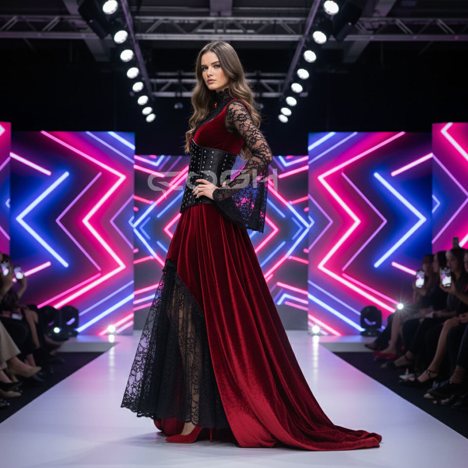 คอร์เซ็ทหนังสีดำสไตล์โกธิคแบบรัดเอวแน่นหนา ตกแต่งด้วยหมุดโลหะสีเงินทั่วทั้งตัว สำหรับคนชอบพังก์ร็อก