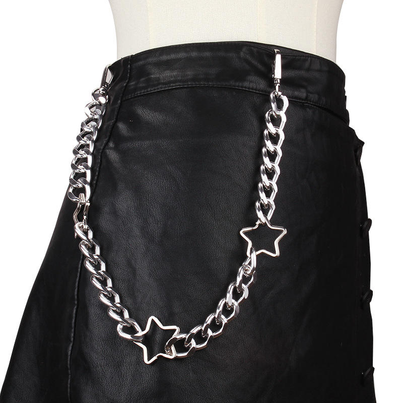โซ่คาดเอวสไตล์พังก์สตาร์เมทัลแบบชั้นเดียว โซ่หนาสำหรับผู้หญิง สวมใส่ได้ทุกวัน ทำจากโลหะผสมสังกะสี