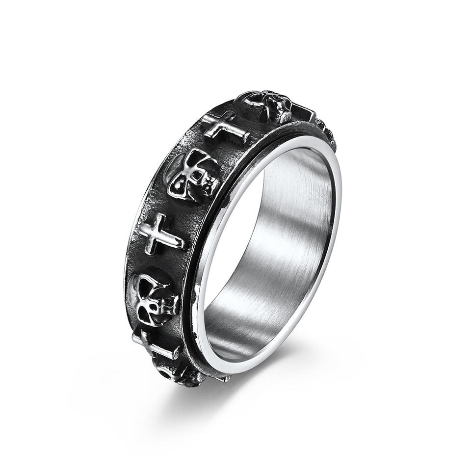 แหวนรูปหัวกะโหลกสไตล์พังก์สีดำ เครื่องประดับแฟชั่นผู้ชาย หมุนได้ ช่วยคลายเครียด