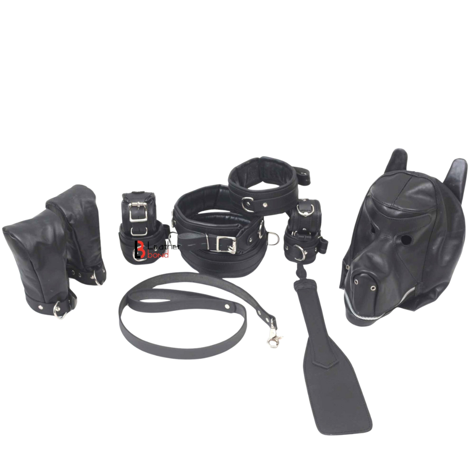 ชุดอุปกรณ์เล่นบทบาทสัตว์เลี้ยงสำหรับลูกสุนัข พร้อมหน้ากากหนัง กุญแจมือ สายจูง และอุปกรณ์เสริม