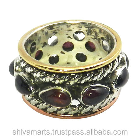 แหวนสปินเนอร์พลอยโกเมนสีเงินแท้925สเตอริงเครื่องประดับเงินแฟนซีสวยแหวนเวอร์เมียล