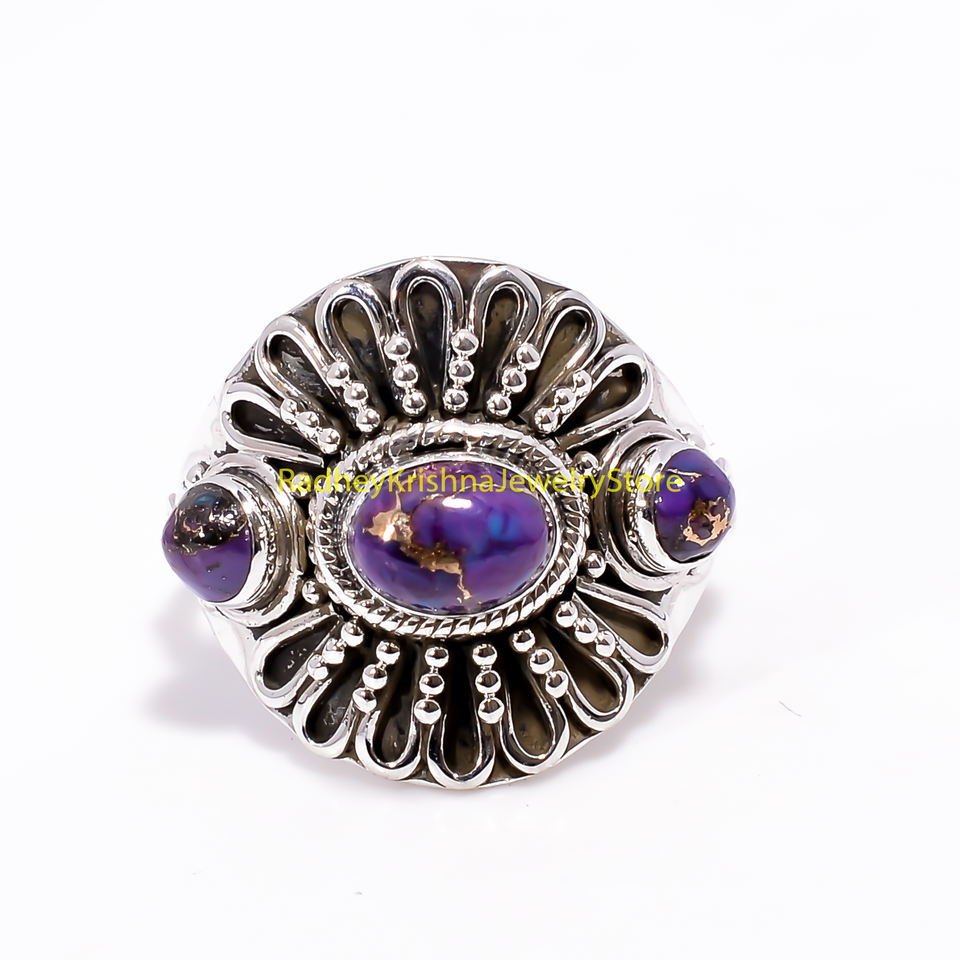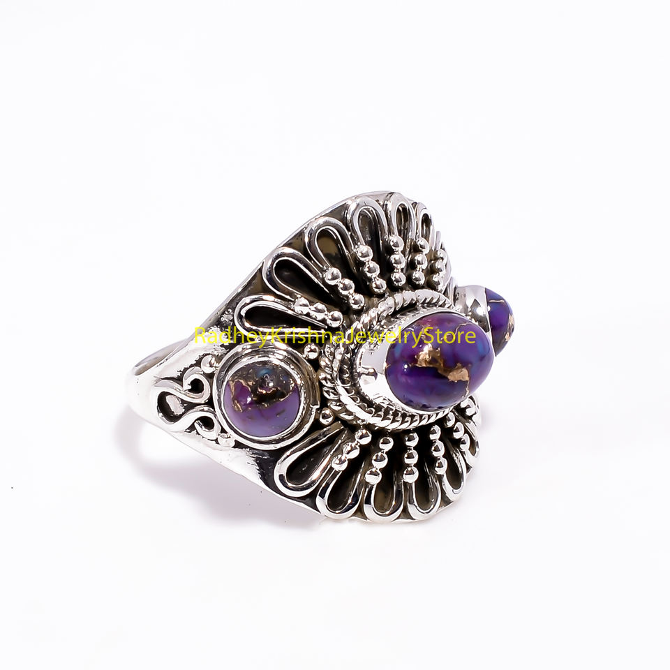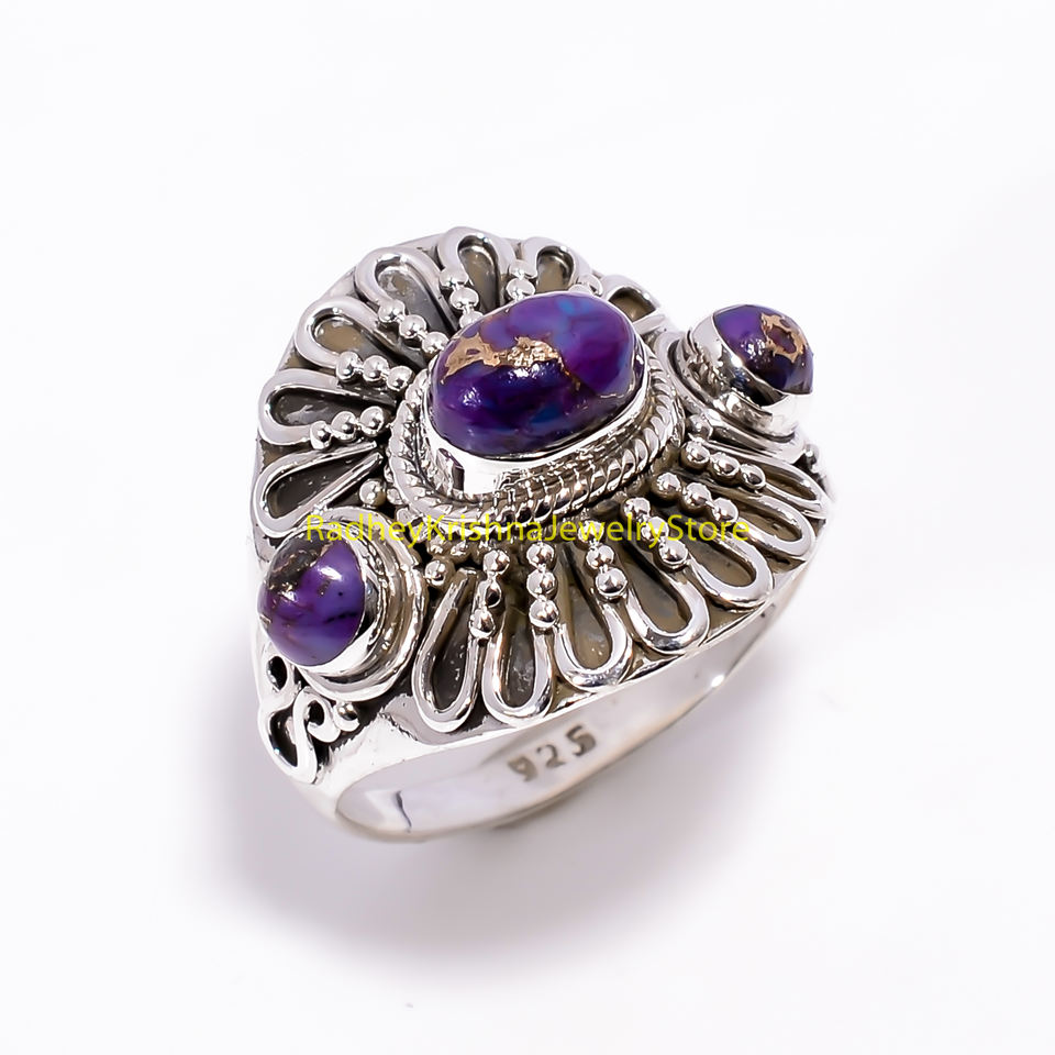 แหวนเงินแท้ 925 ประดับด้วยพลอยสีม่วงแดงและเทอร์ควอยซ์ ดีไซน์โดดเด่น งานแฮนด์เมด สไตล์วินเทจ โบฮีเมียน ขายส่งแหวนเงินสำหรับผู้หญิง