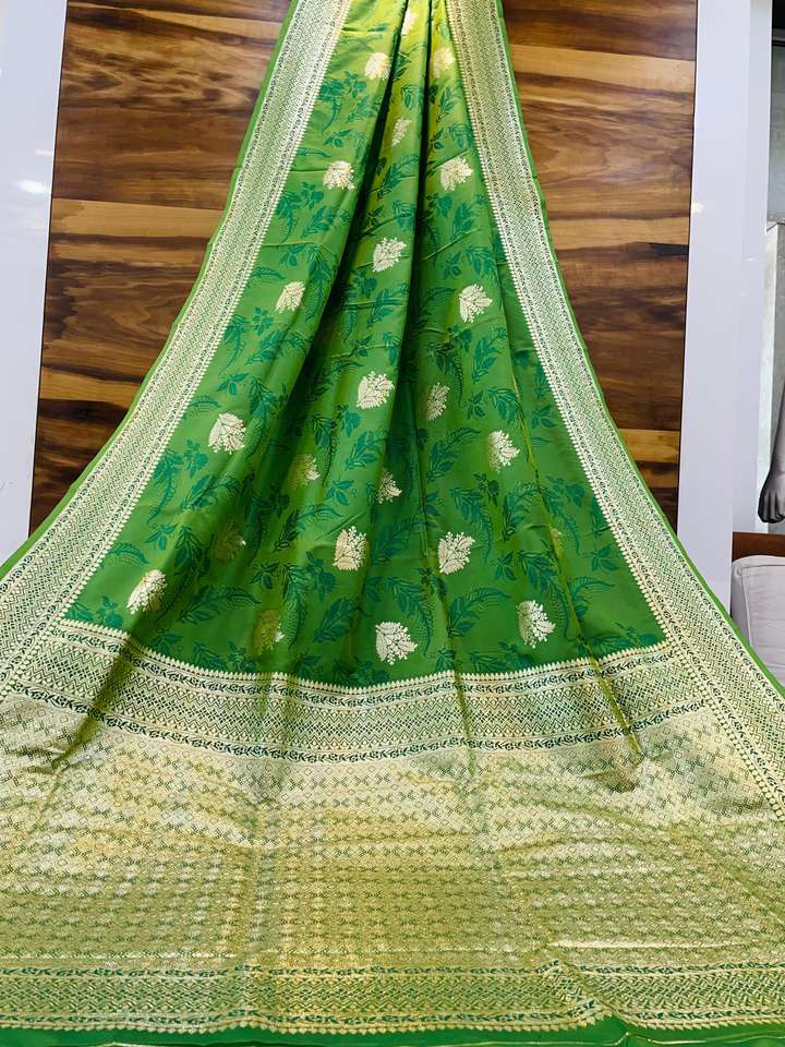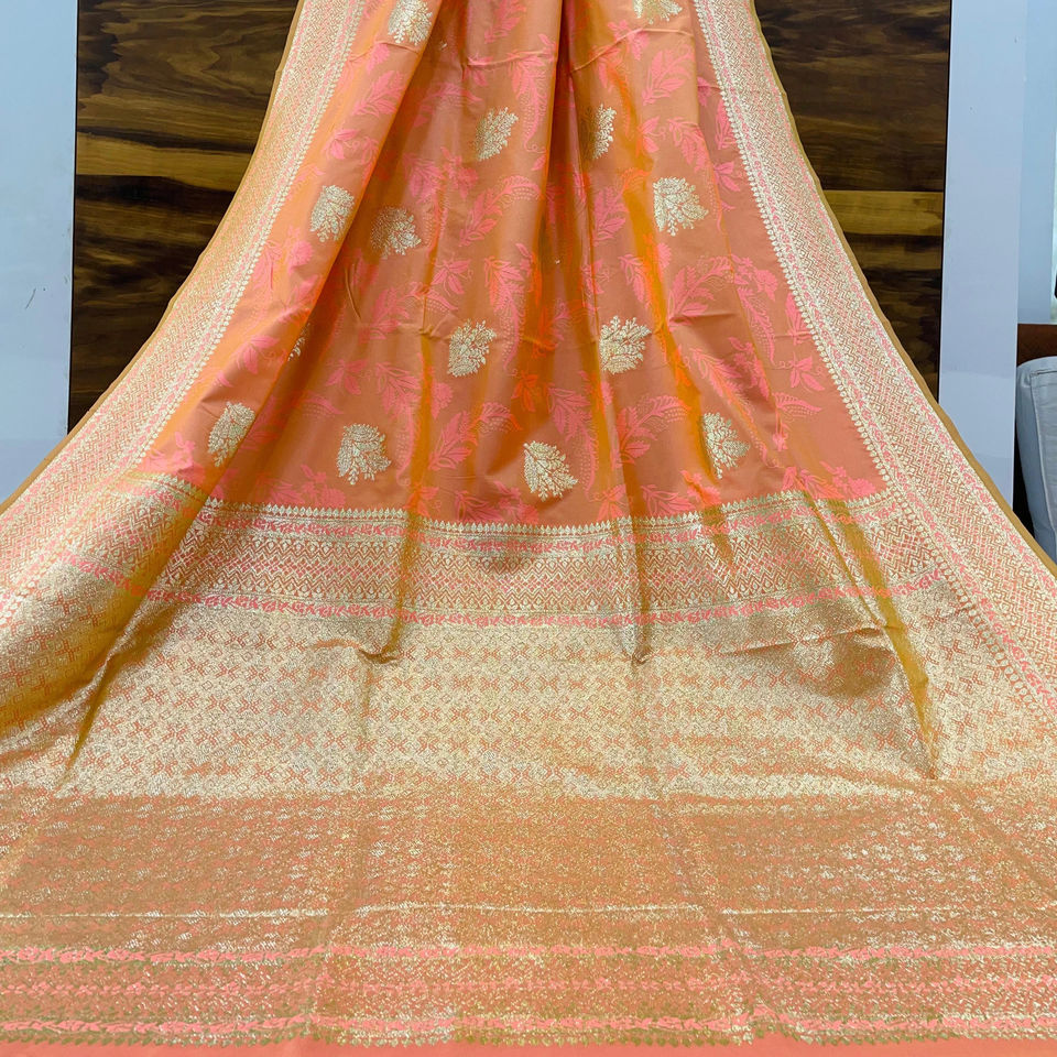 ผ้าส่าหรีผ้าไหมทอลายดอกไม้สำหรับงานแต่งงานเสื้อผ้าพื้นเมือง Banarasi Jari ส่าหรี