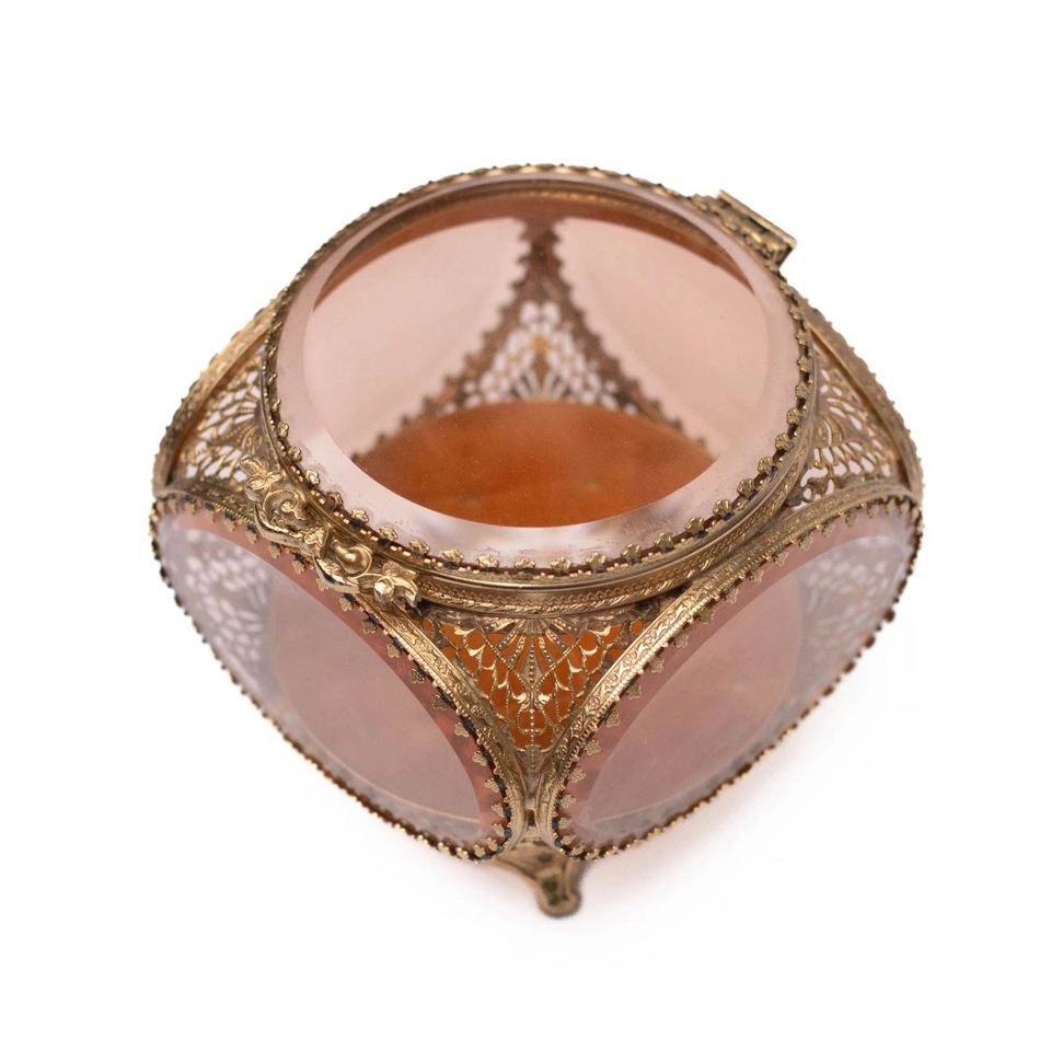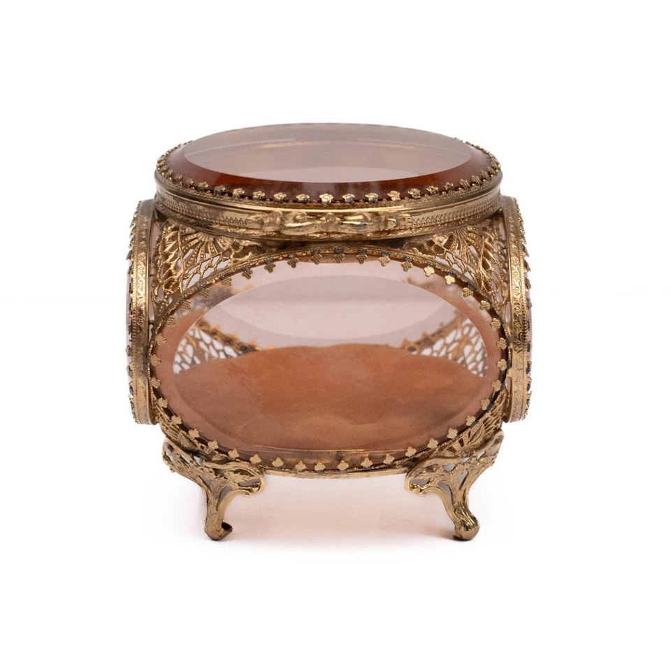 ขอบทองเหลืองบริสุทธิ์กระจกใสทรงกลมขนาดตามสั่งสีทองโบราณสำหรับแต่งหน้าเครื่องประดับกล่องแก้วเล็กๆน้อยๆ