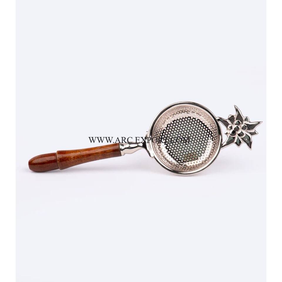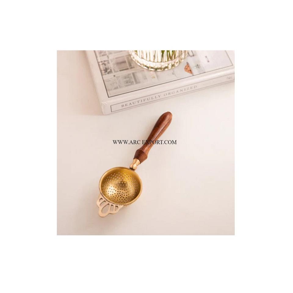 ที่กรองชาประดับตกแต่งห้องครัวทำจากทองเหลืองบริสุทธิ์ที่กรองชาพร้อมที่จับไม้