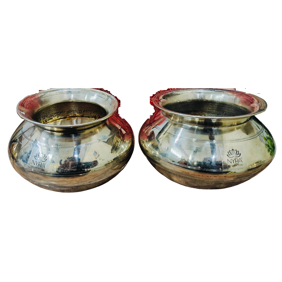 หม้อต้มทองเหลืองบริสุทธิ์ขัดเงา2ลิตรพร้อมแผ่นทองเหลืองด้านล่างหนาชุบทอง