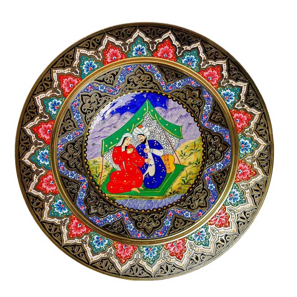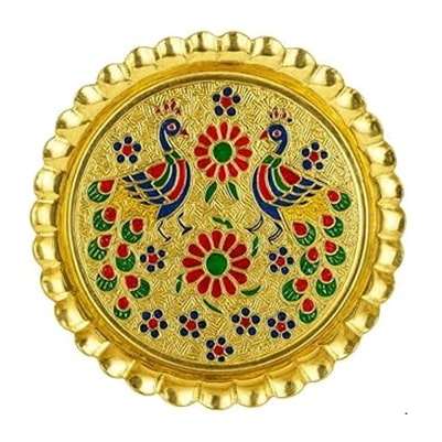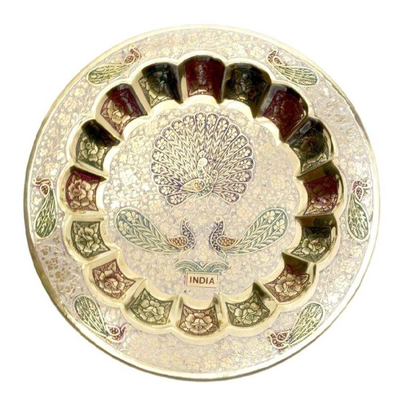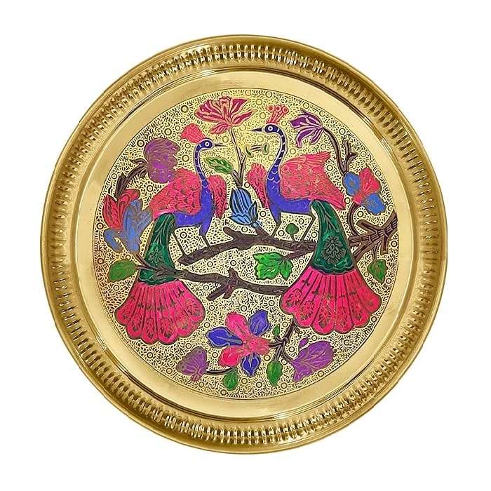 จานเสิร์ฟทรงกลมทองเหลืองแท้ คุณภาพสูง สำหรับร้านอาหารและโรงแรม จานโลหะทรงกลมลายสลักนกยูง