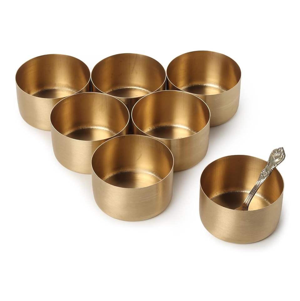 กล่องเครื่องเทศทองเหลืองบริสุทธิ์ Masala dabba มีลวดลายมันดาลาที่สวยงามและการตกแต่งห้องครัวด้วยงานฝีมือที่ประณีต