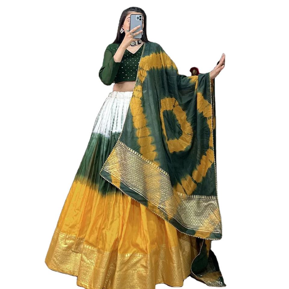 พิมพ์ชันเดอรี่และชิบอรี่บริสุทธิ์พร้อมเสื้อทํางานทอผ้า Zari ผ้าไหมเรงโกลีลีฮันก้าโชลี