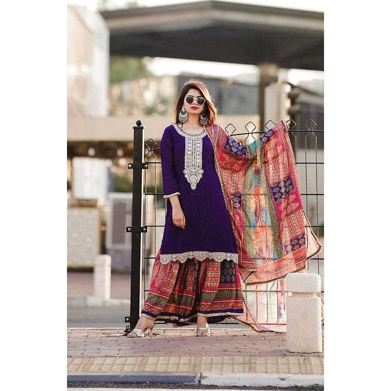 ชุดเสื้อผ้าไหมชีนอนแท้ พร้อมกางเกงพลลาซโซและผ้าคลุมไหล่ สำหรับงานปาร์ตี้ ไซส์ 2XL