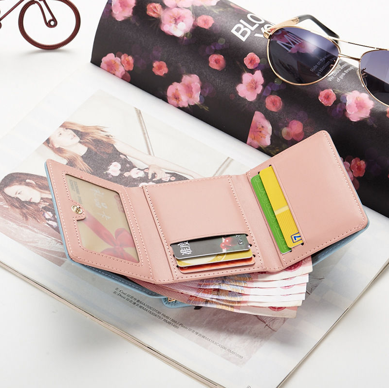 กระเป๋าสตางค์หนัง PU สไตล์มินิมอลสีพื้น ประดับหมุด น่ารัก สำหรับนักเรียนหญิง ใส่เหรียญและของจุกจิก