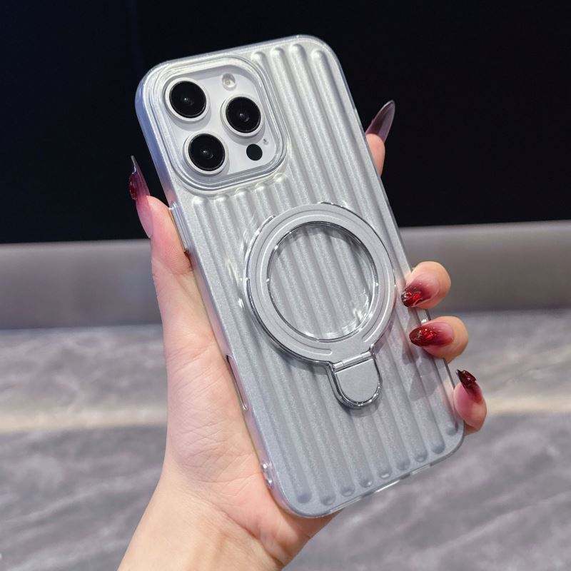เคสโทรศัพท์กันกระแทกแบบแข็งพร้อมขาตั้งแม่เหล็กสีพื้น สำหรับ iPhone 17 16 15 14 Promax-ดีไซน์ลายลูกฟูกแฟชั่นสีพื้น