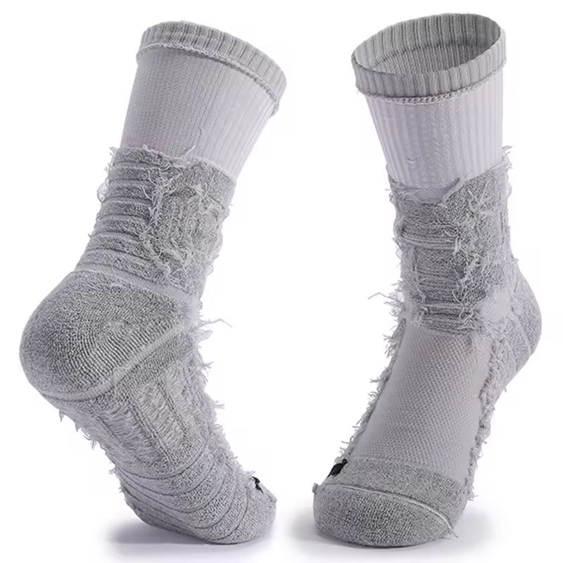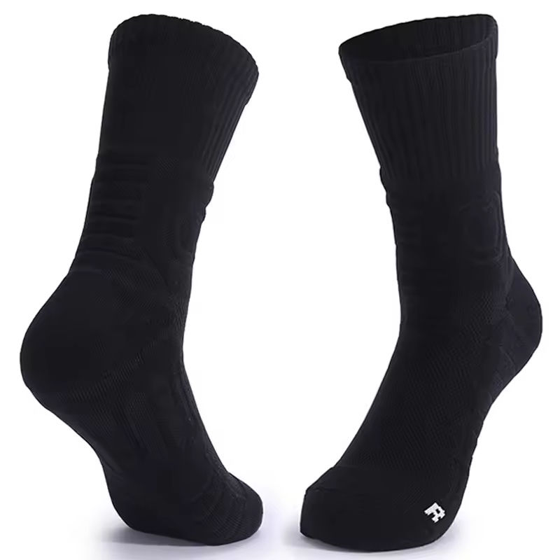 ถุงเท้ากีฬาสีพื้น ขาว ดำ เทา แบบหนา ถุงเท้าข้อสูงปักโลโก้สีดำ คุณภาพสูง ขายส่ง