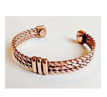สร้อยข้อมือทองแดงบริสุทธิ์สำหรับผู้ชายลายสก๊อตกว้าง15มม. 6ชิ้นแม่เหล็ก3200Gauss กำไลข้อมือแม่เหล็กปรับพลังงานได้