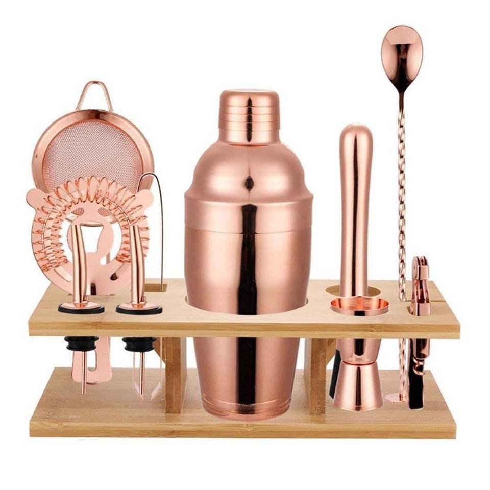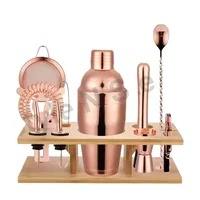ชุดเชคเกอร์ค็อกเทลทองแดงแท้ พร้อมขาตั้งไม้ ชุดอุปกรณ์บาร์ 10 ชิ้น 750 มล. หรูหรา ยั่งยืน ขายดี เชคเกอร์ไวน์