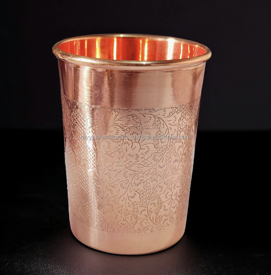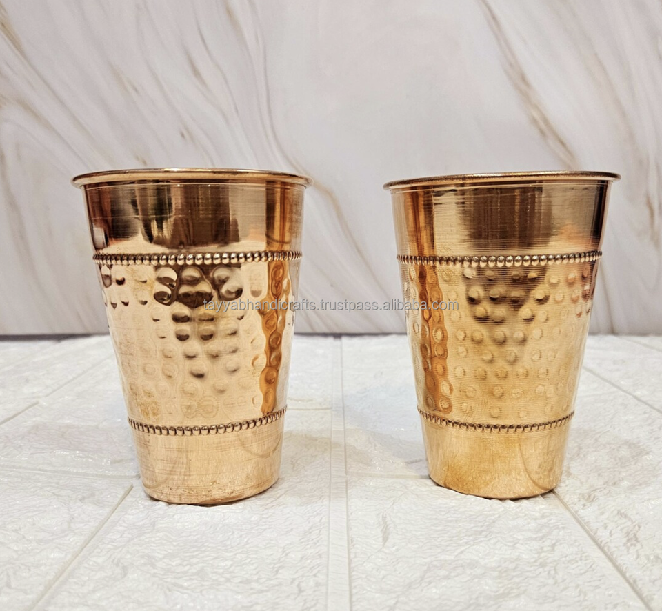 แก้วทองแดงแท้สำหรับดื่มมิ้นท์จูลเพ็ป แก้วทองแดงเพื่อสุขภาพแบบอายุรเวท แก้วทองแดงตีลายจากอินเดีย