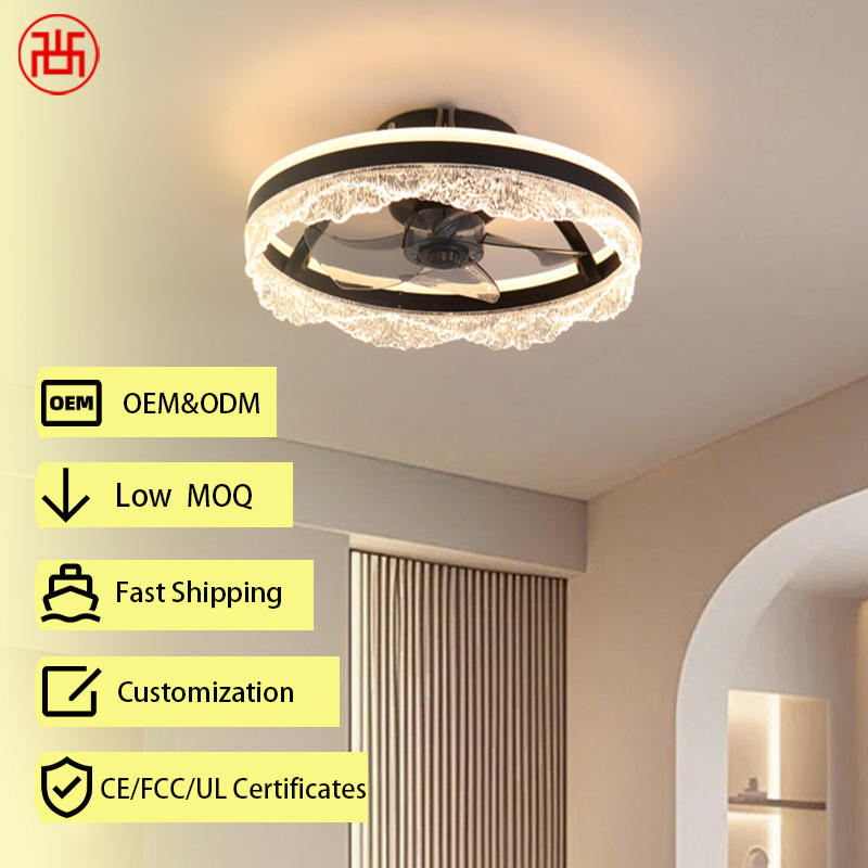 มอเตอร์ไฟฟ้ากระแสตรงทองแดงบริสุทธิ์ & หรี่ไฟได้แบบไร้ขั้นตอนพัดลมเพดานอะคริลิค5ใบมีดทันสมัยสามารถปรับสีได้3000K-6500K 6สปีดควบคุมผ่านแอป/ รีโมต