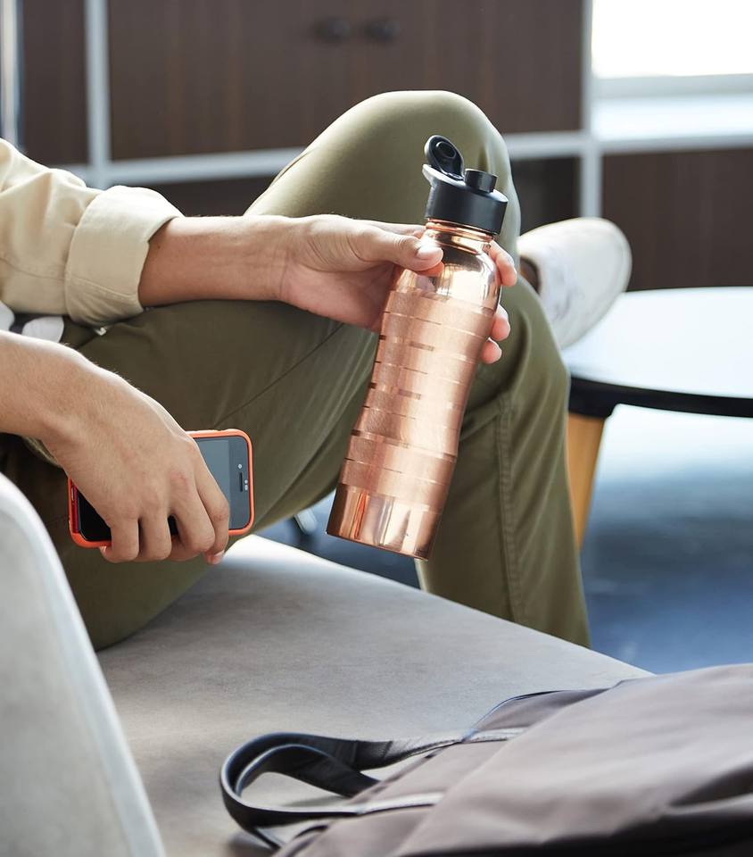ขวดน้ำทองแดงแท้แบบฝาเปิด | ขวดน้ำทองแดงป้องกันการรั่วซึมและกันสนิม สำหรับสำนักงาน โรงเรียน และบ้าน ขวดน้ำทองแดงแท้แบบเปิดปิดได้