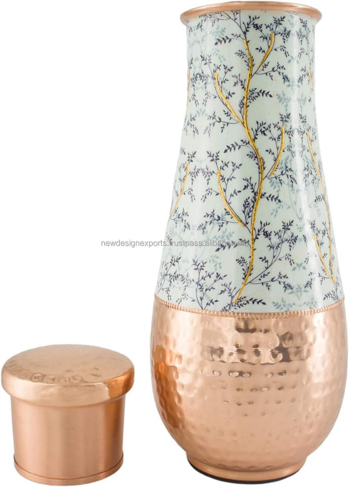 เหยือกน้ำโลหะ1.8ลิตรคอยาวทำจากทองแดงบริสุทธิ์สำหรับดื่มอายุรเวทประโยชน์ต่อสุขภาพ