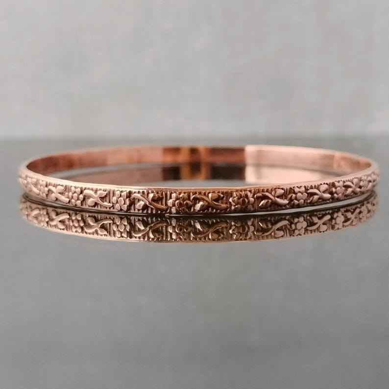 กำไลข้อมือทองแดงแท้สำหรับผู้ชายและผู้หญิง งานแฮนด์เมดลายดอกไม้สลัก พร้อมแม่เหล็กบำบัด บรรเทาอาการปวดอย่างมีสไตล์
