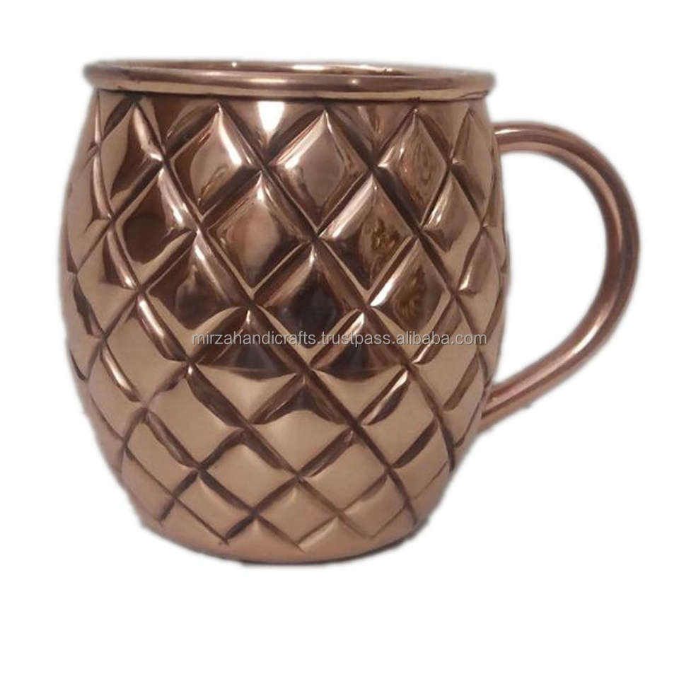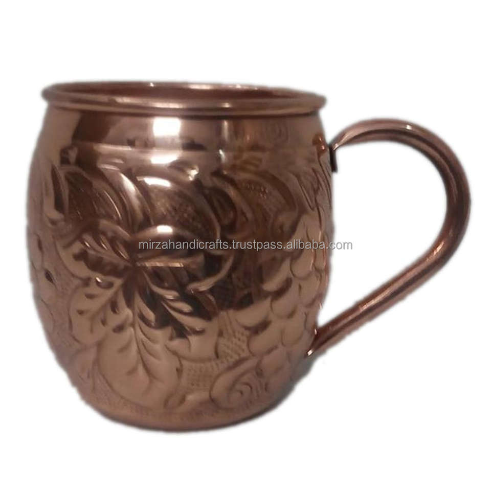 เหยือกทองแดงบริสุทธิ์350มล. มีด้ามจับทองเหลืองดีไซน์องุ่นนูนสำหรับเครื่องดื่ม